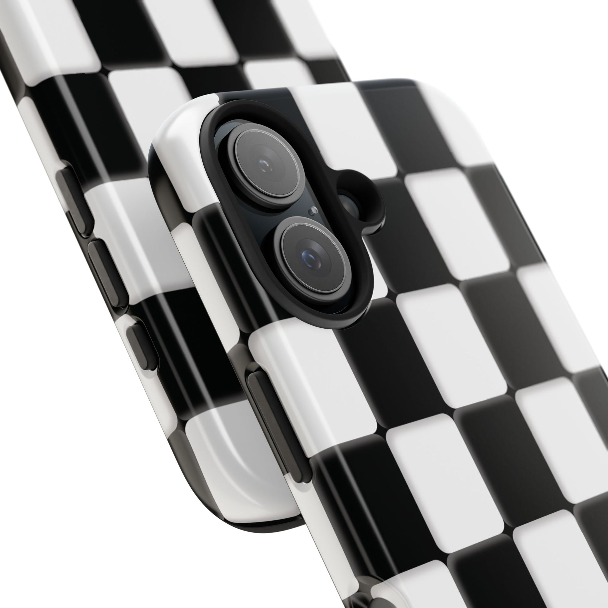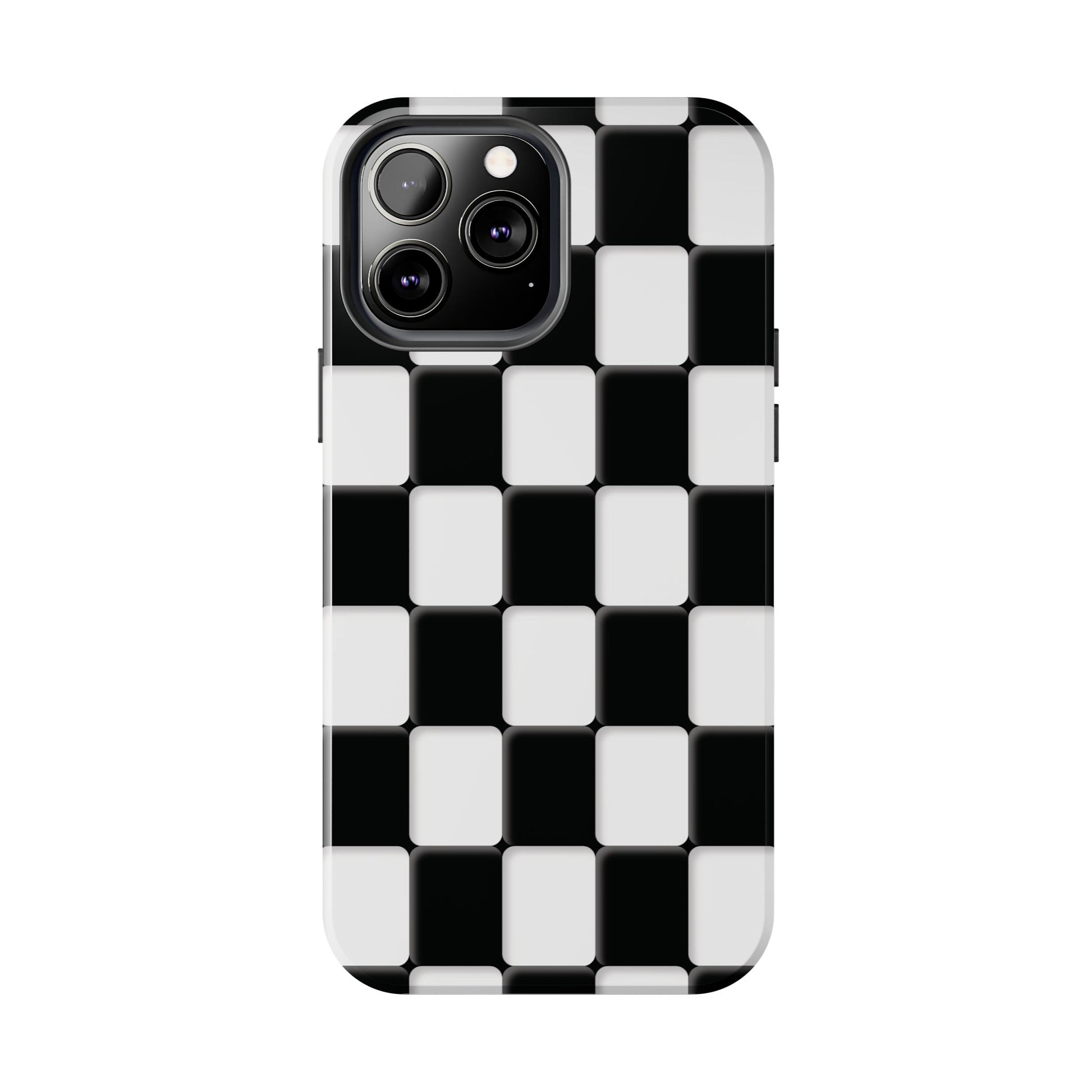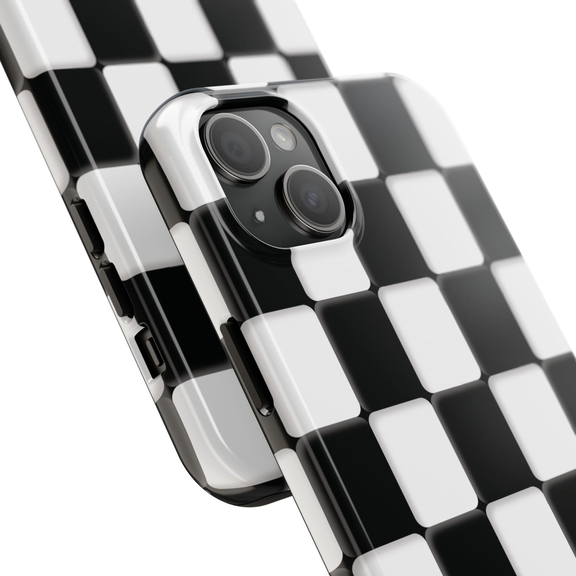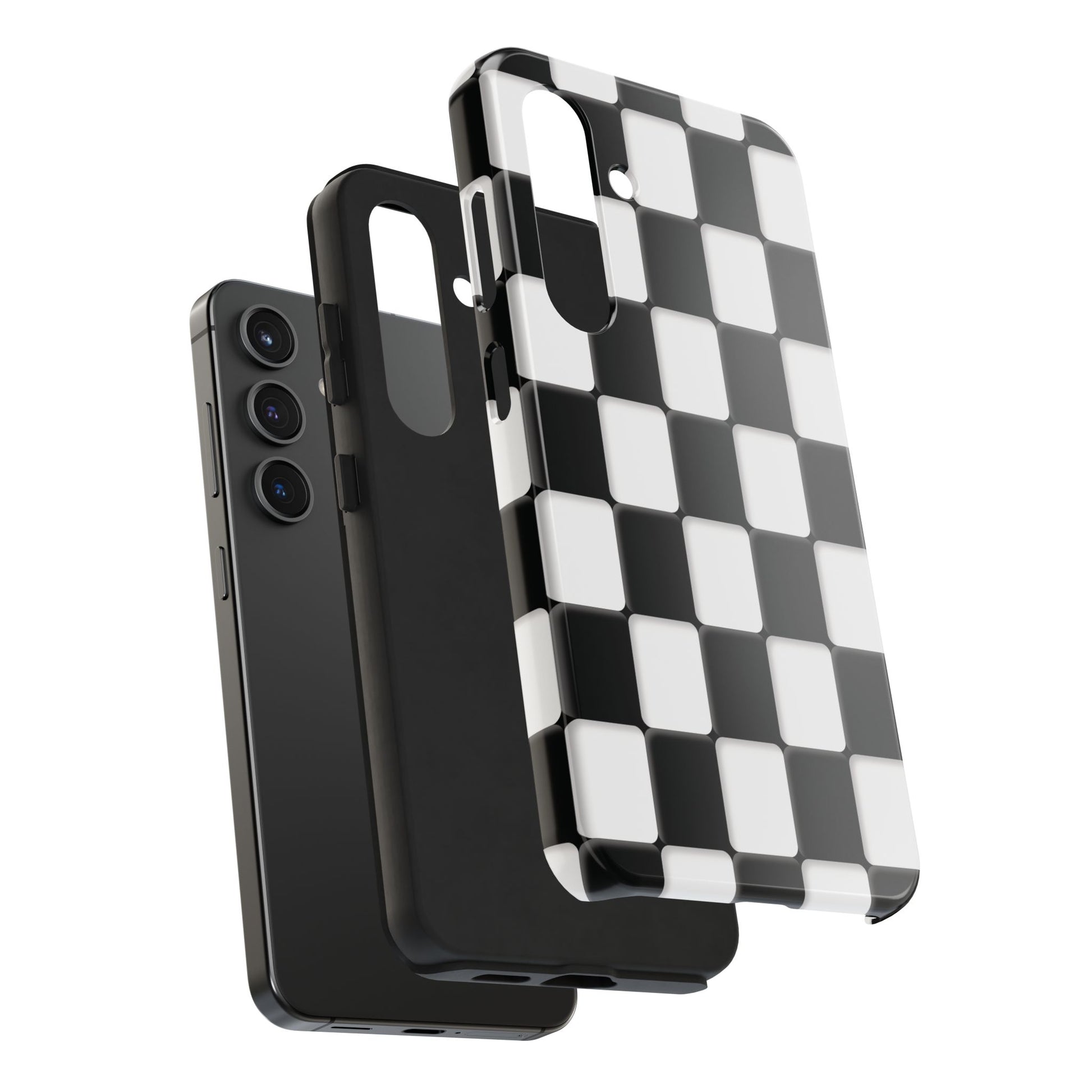 Checkerboard Tough Phone Case — Black & White Retro Protective Cover