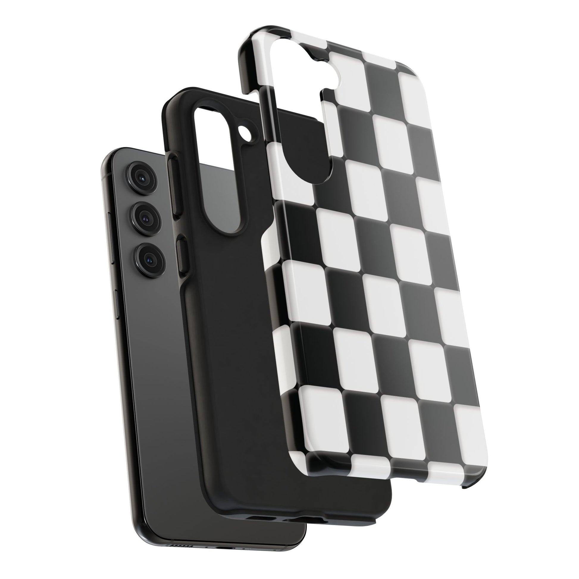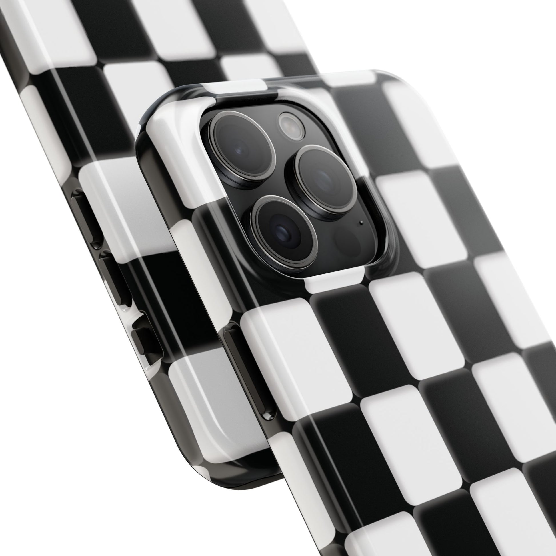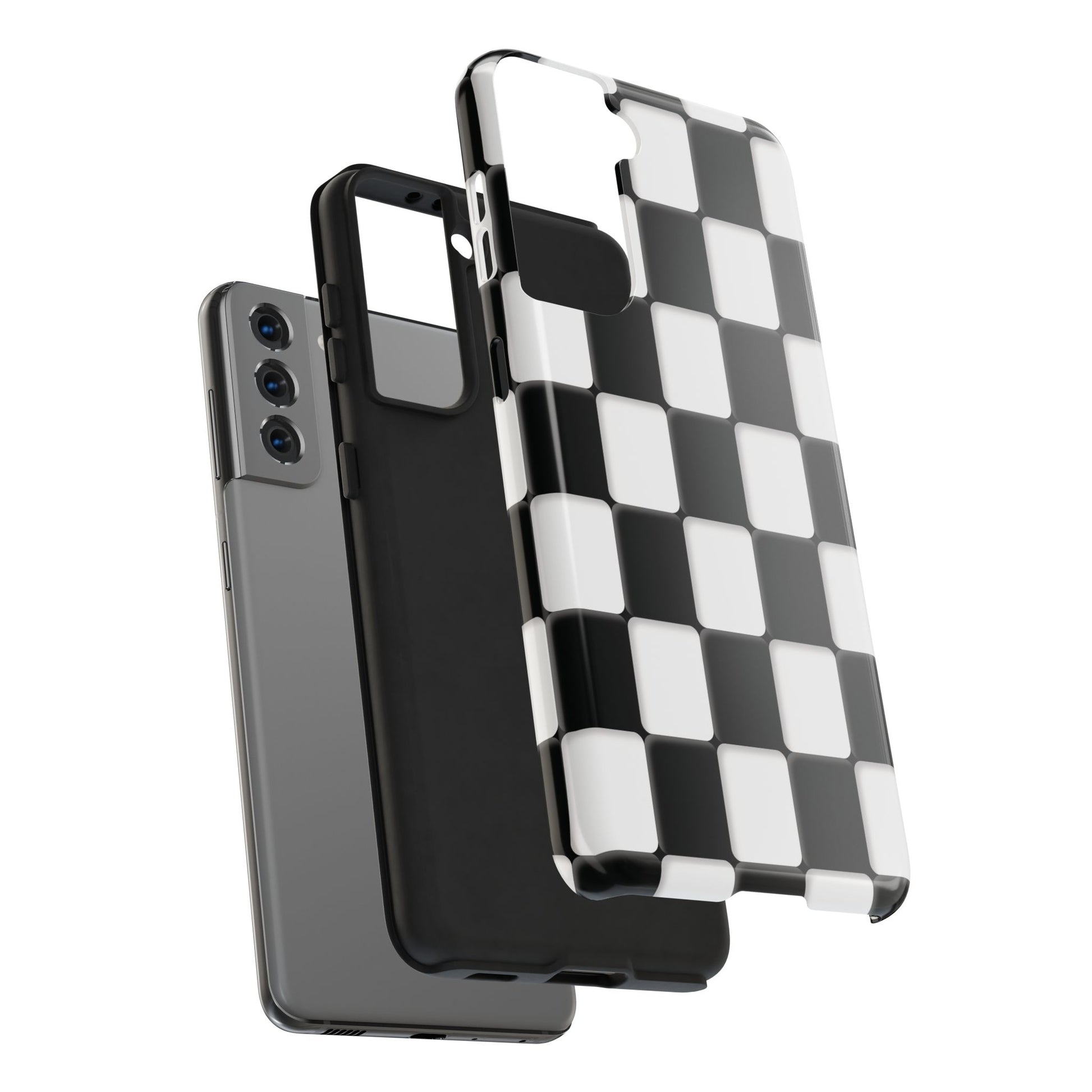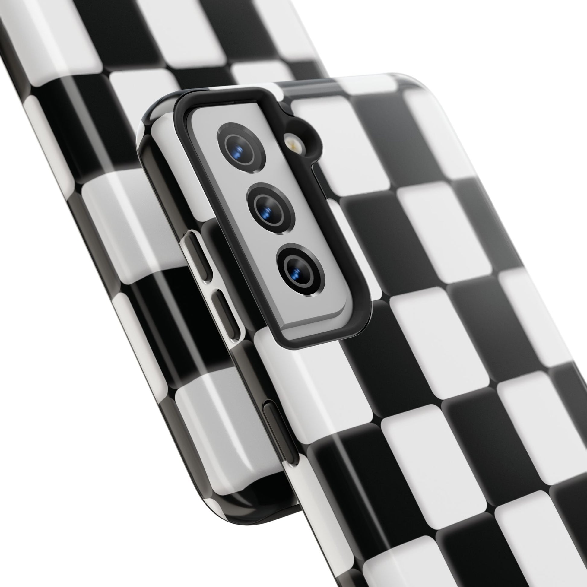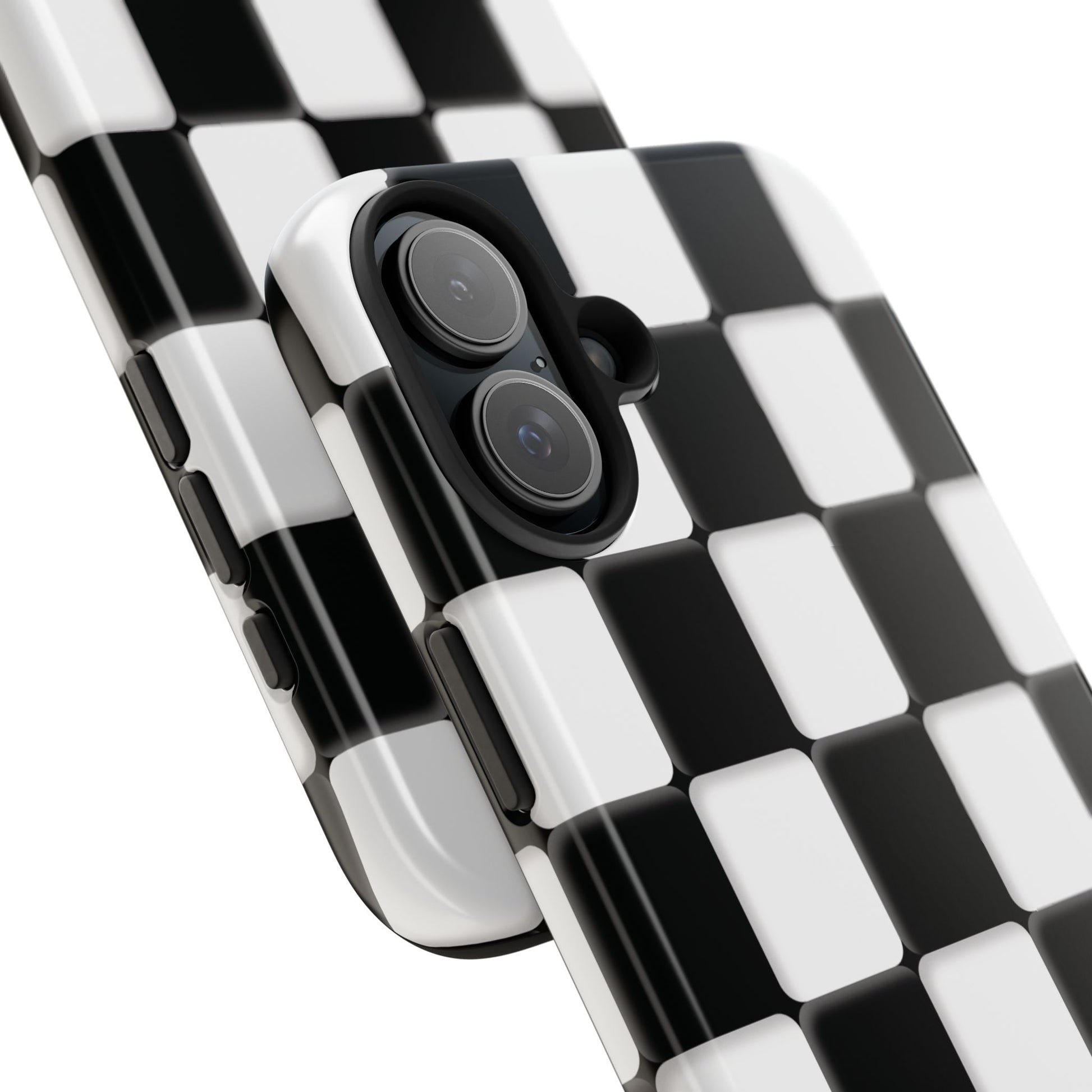 Checkerboard Tough Phone Case — Black & White Retro Protective Cover