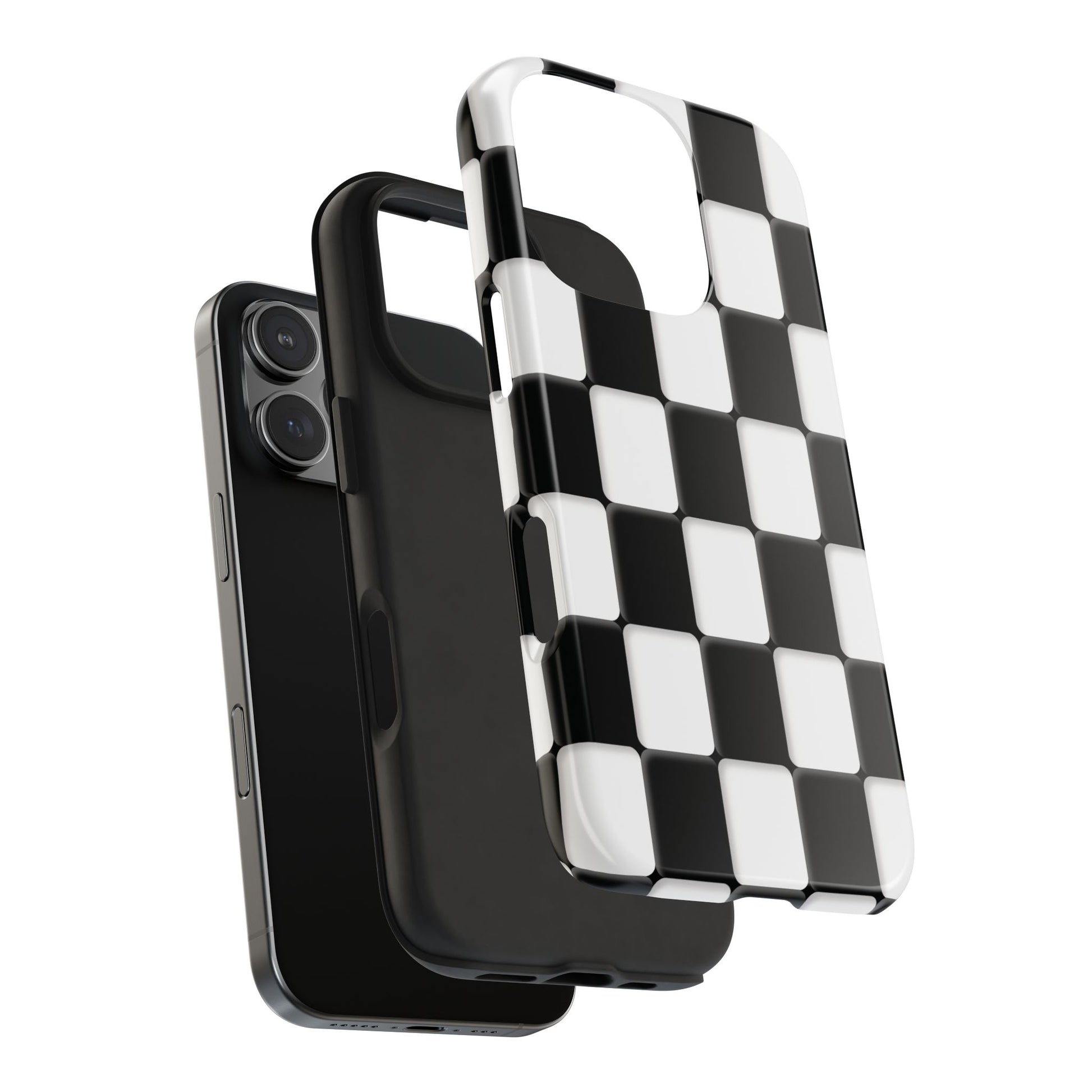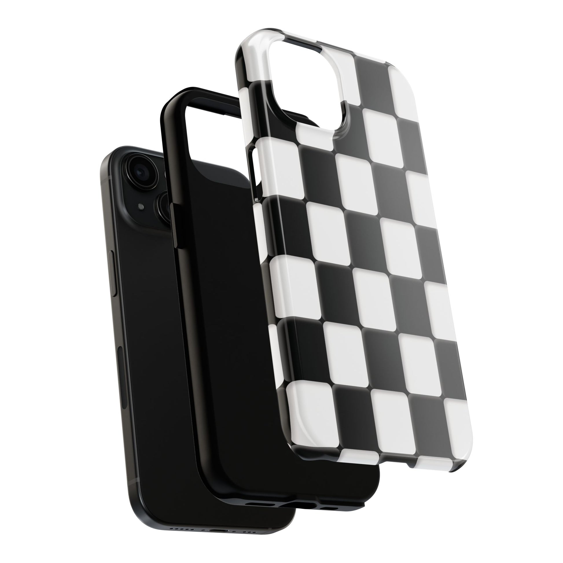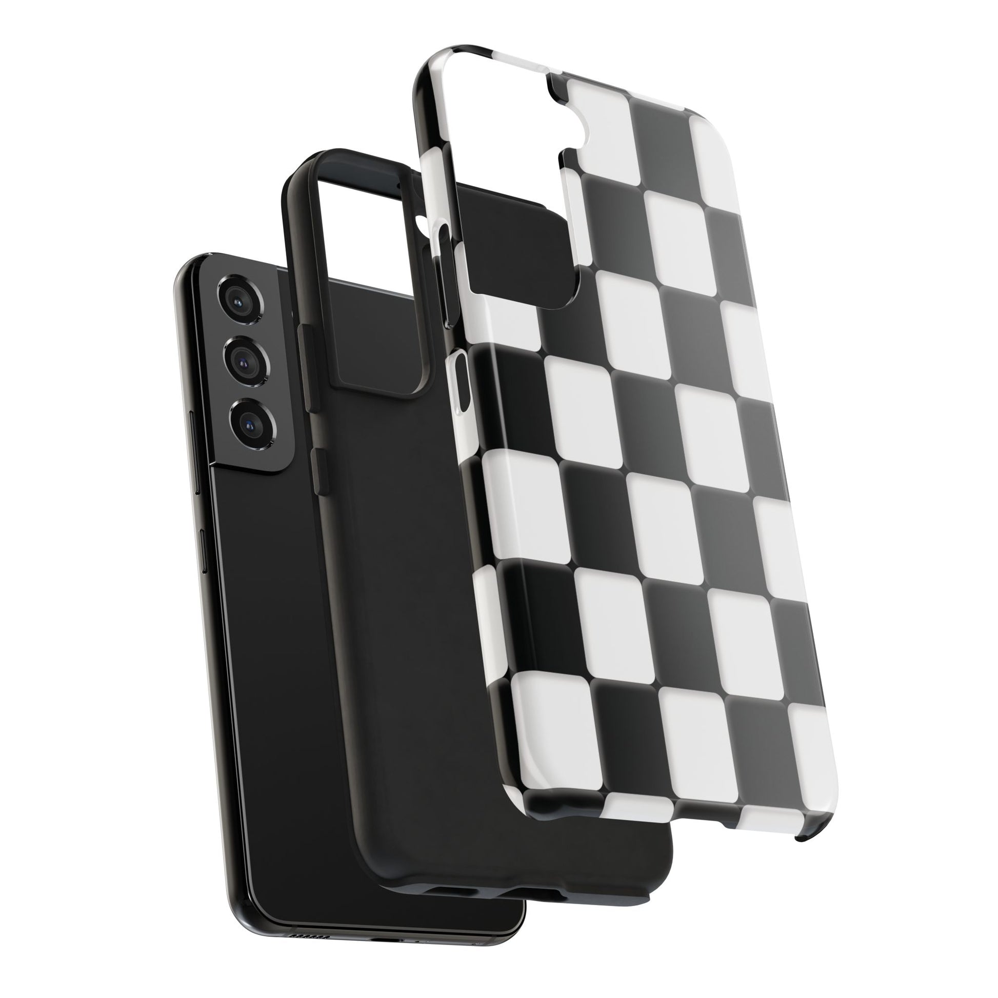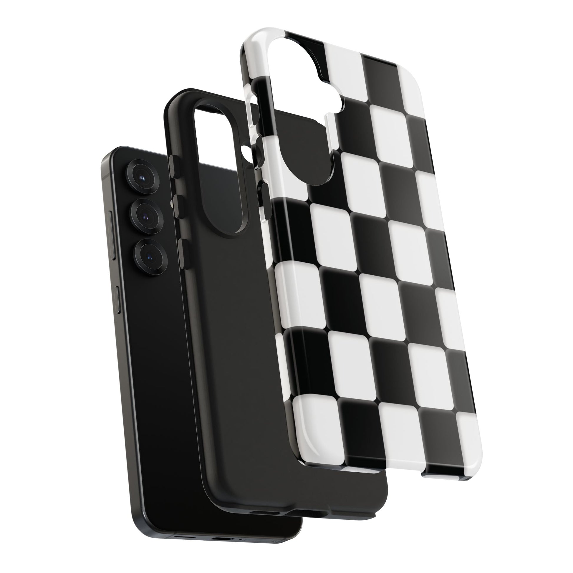 Checkerboard Tough Phone Case — Black & White Retro Protective Cover