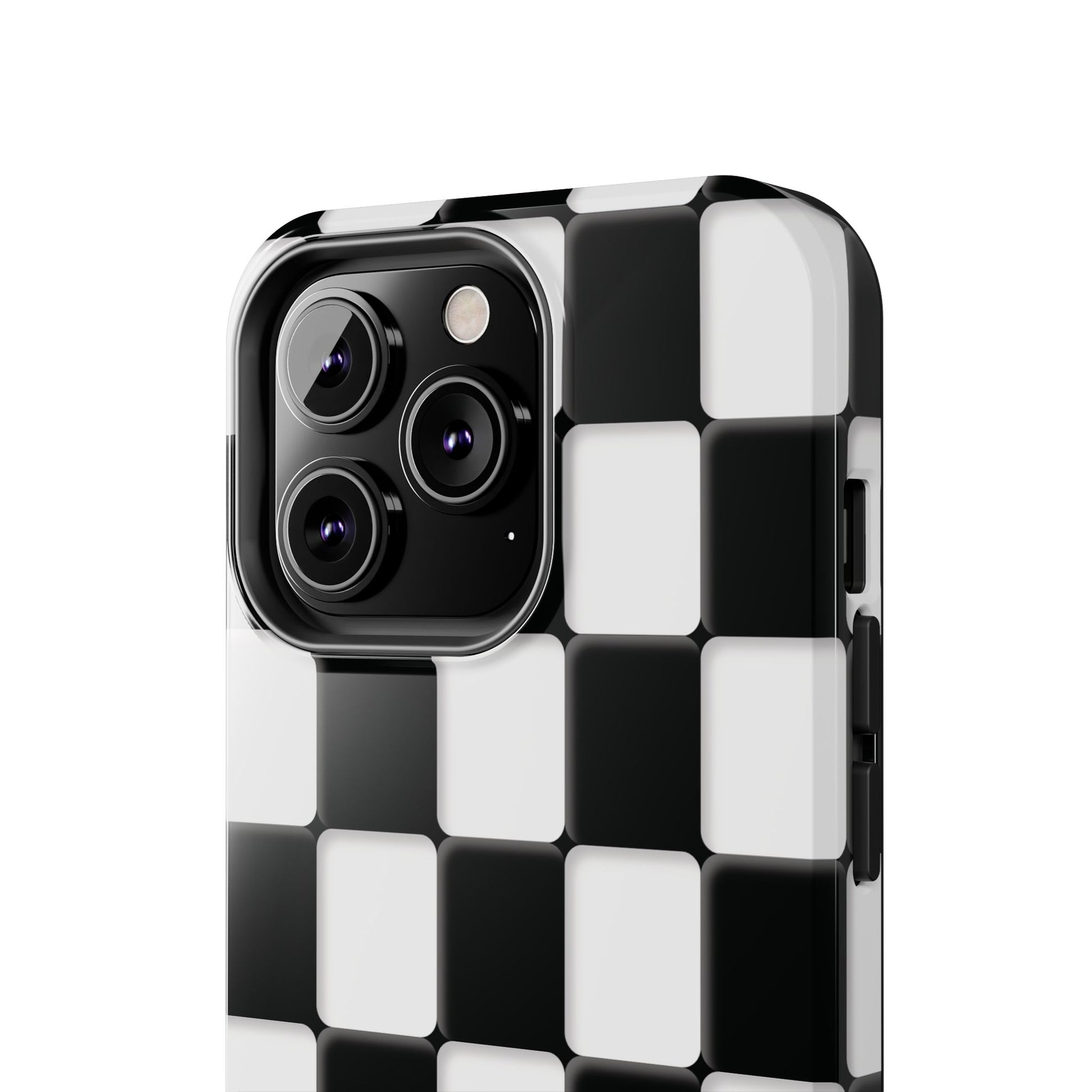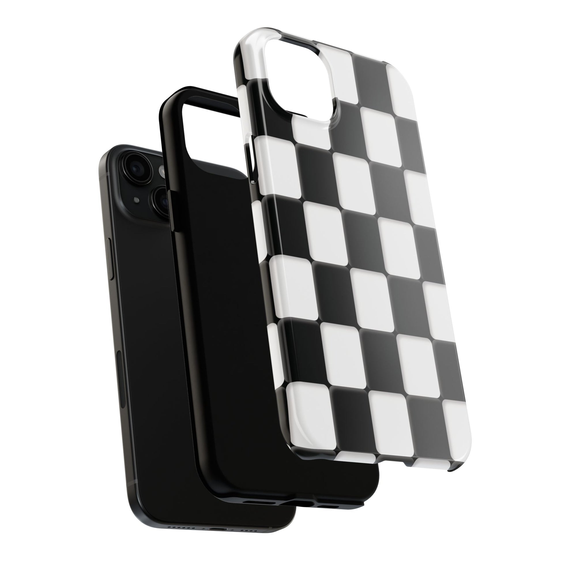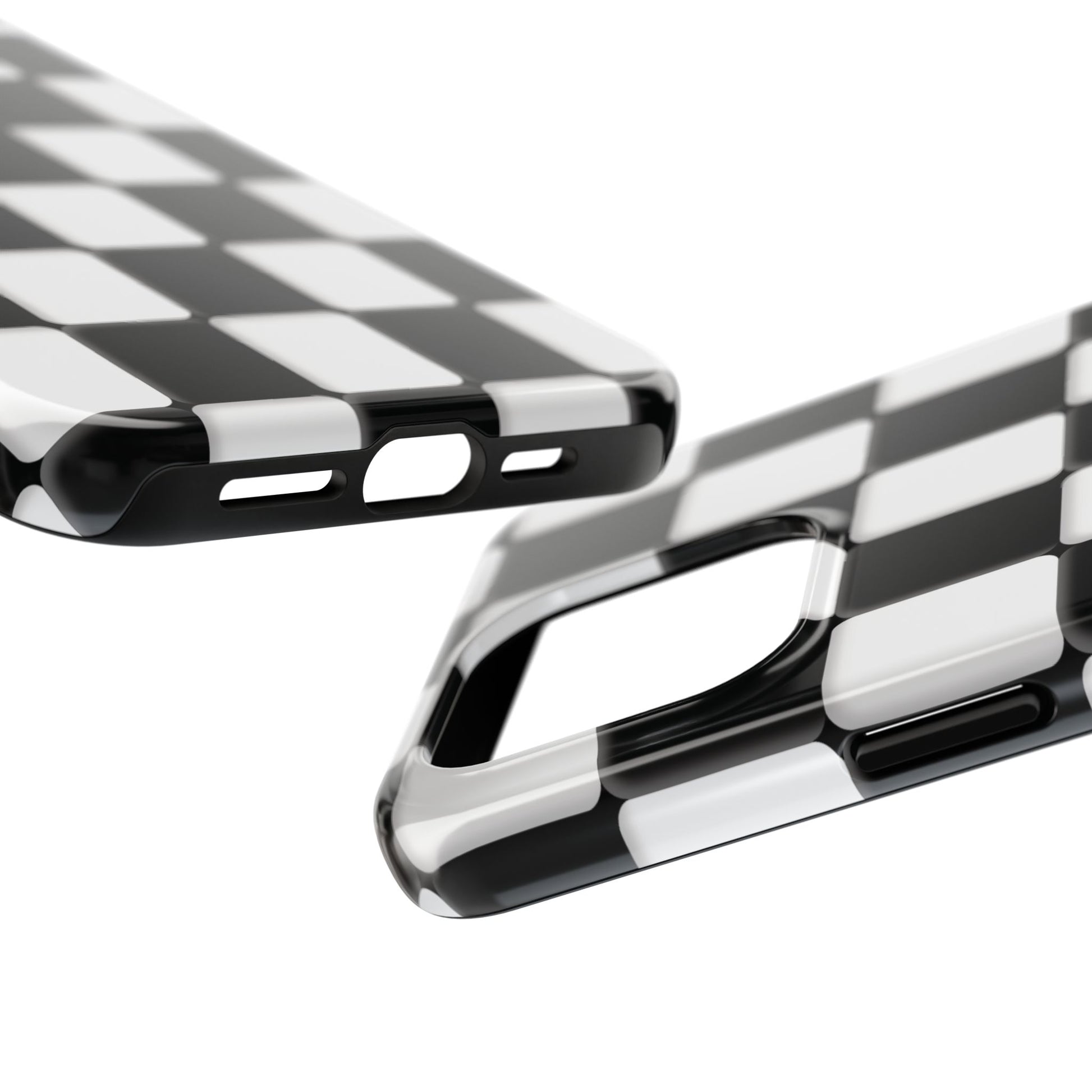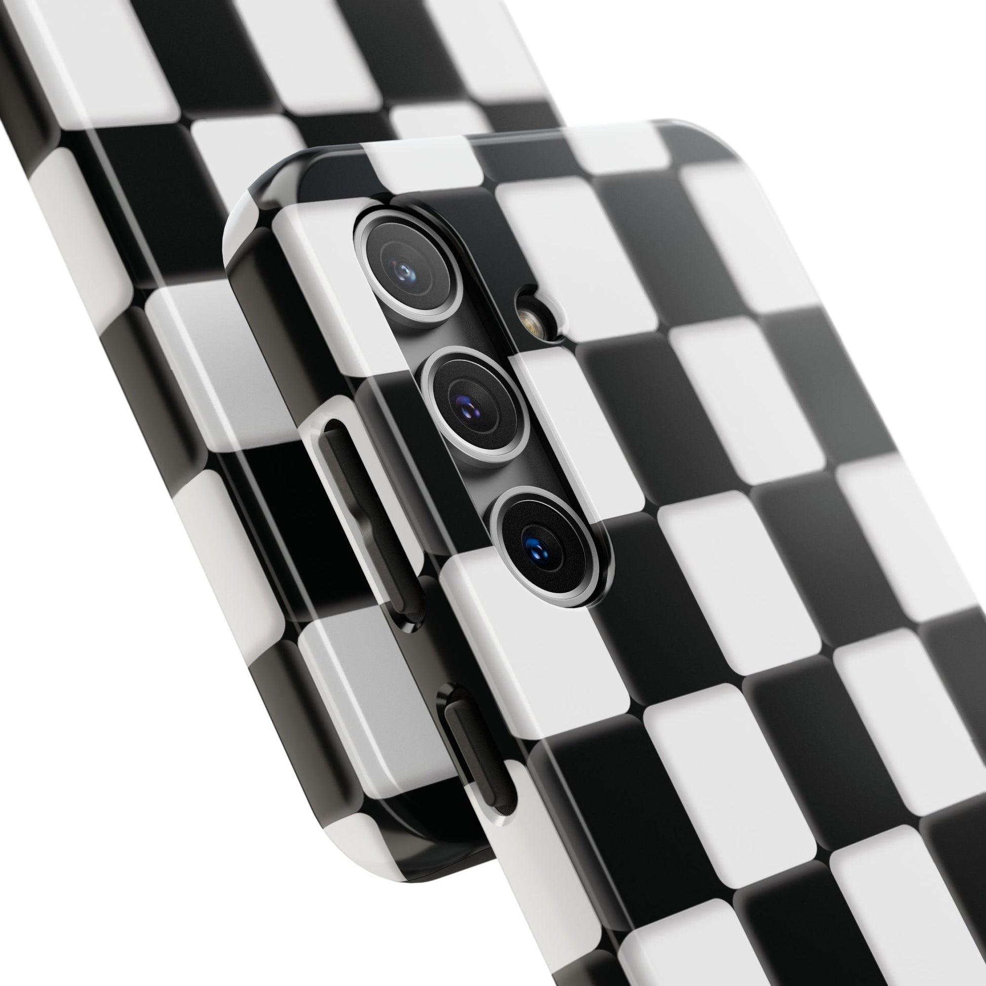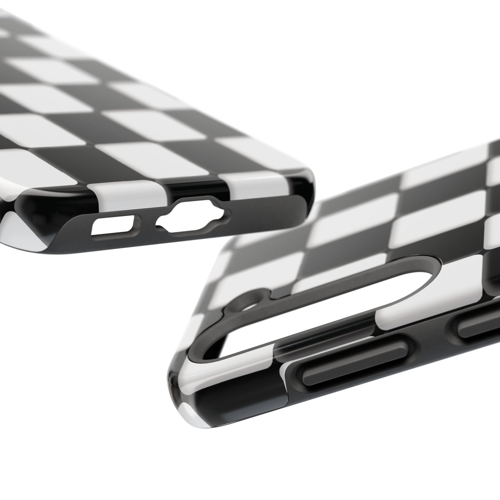 Checkerboard Tough Phone Case — Black & White Retro Protective Cover