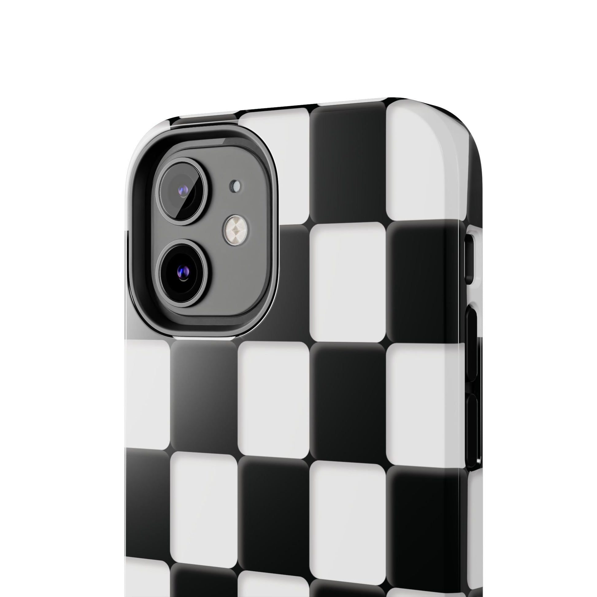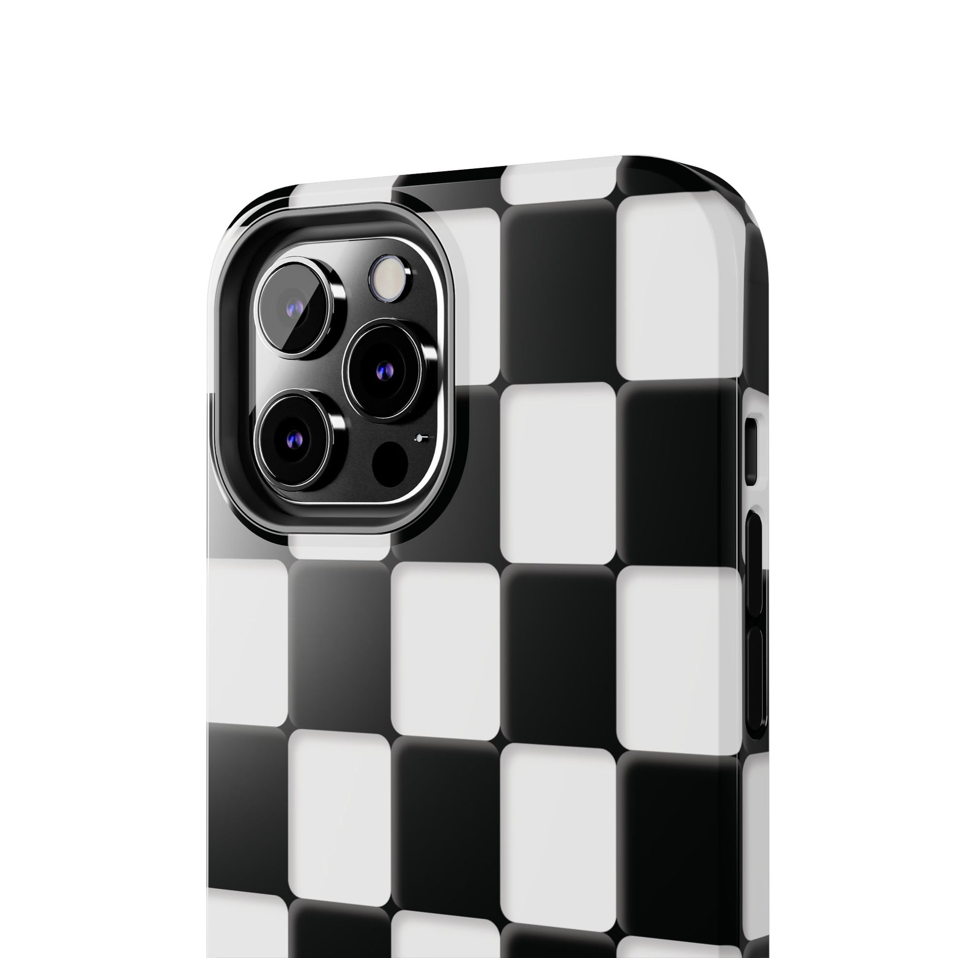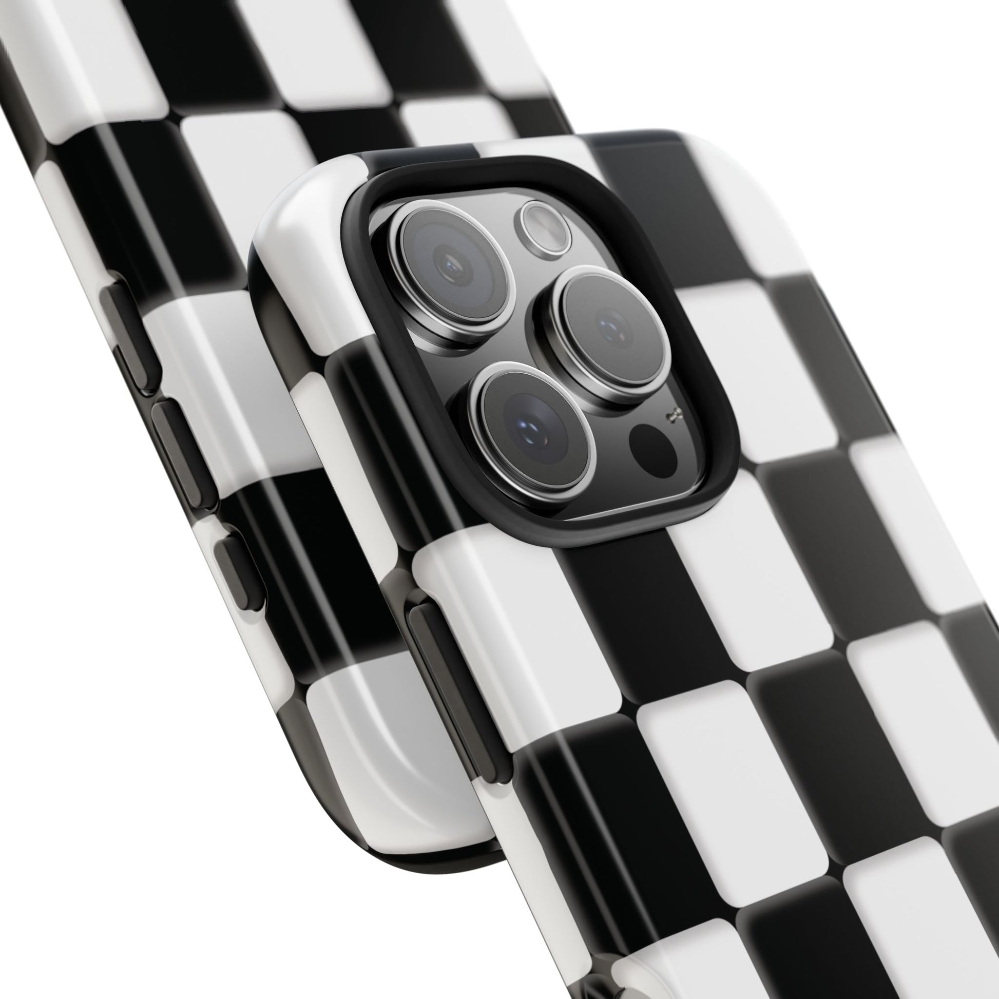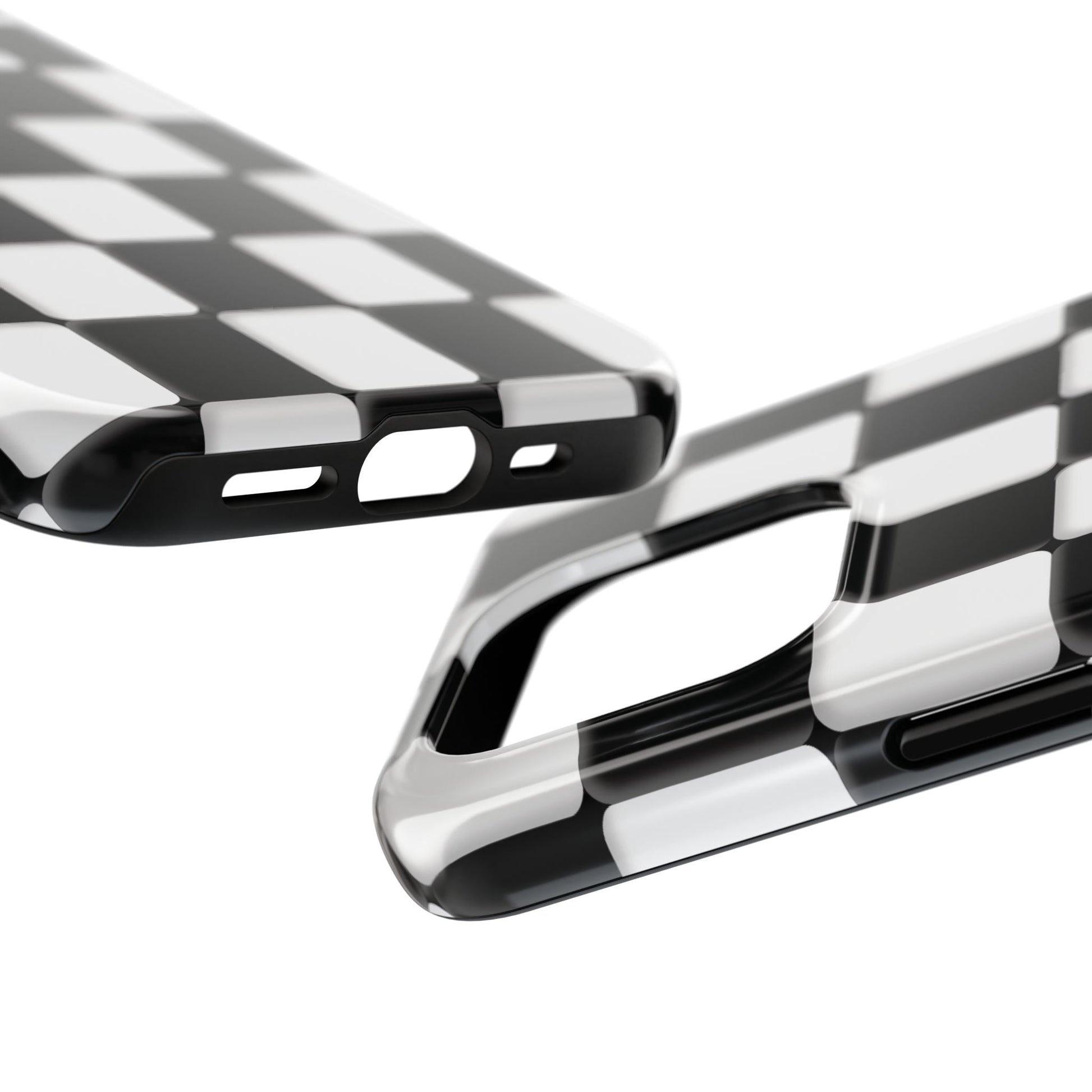 Checkerboard Tough Phone Case — Black & White Retro Protective Cover