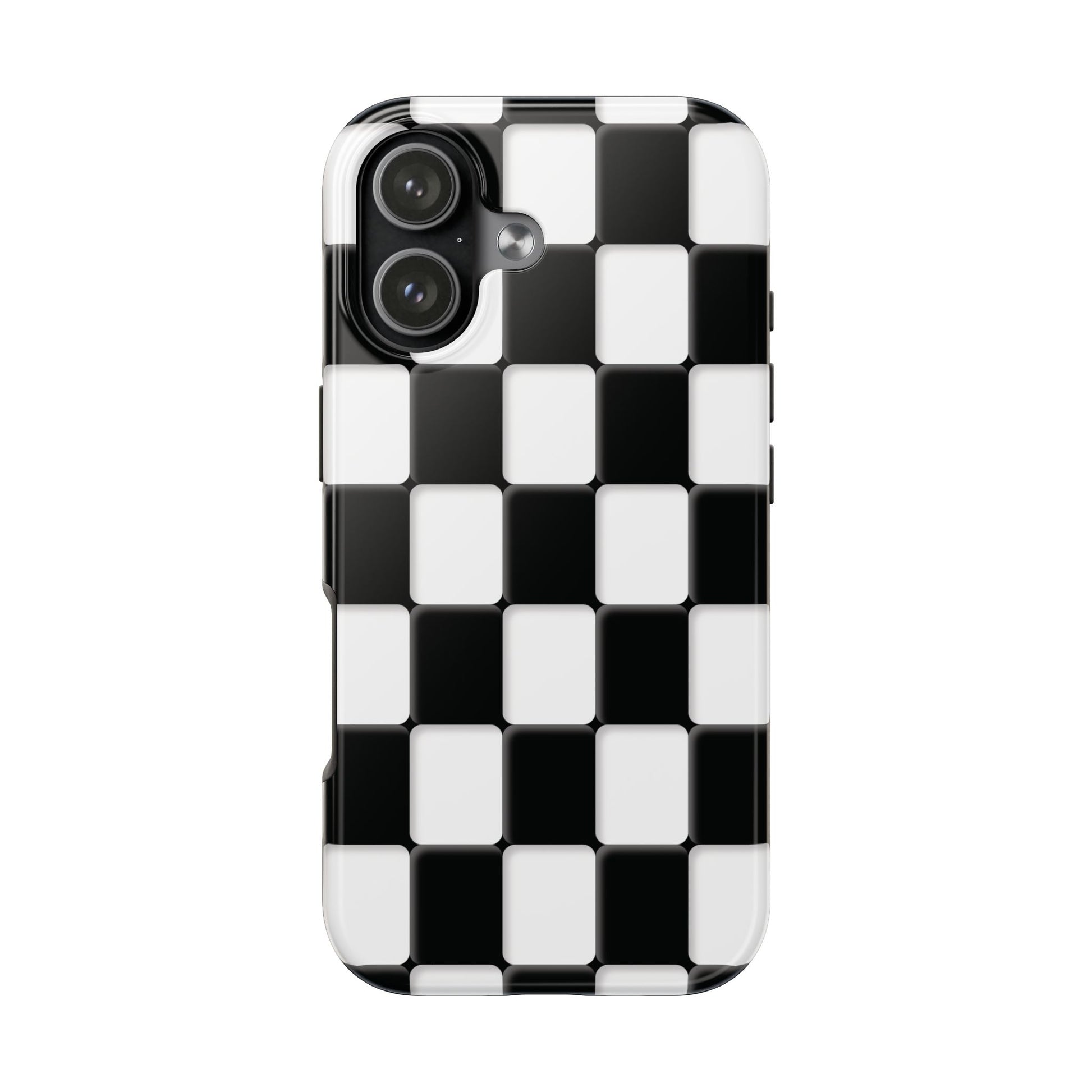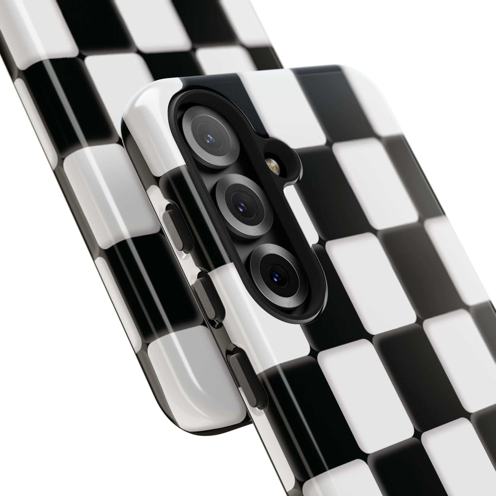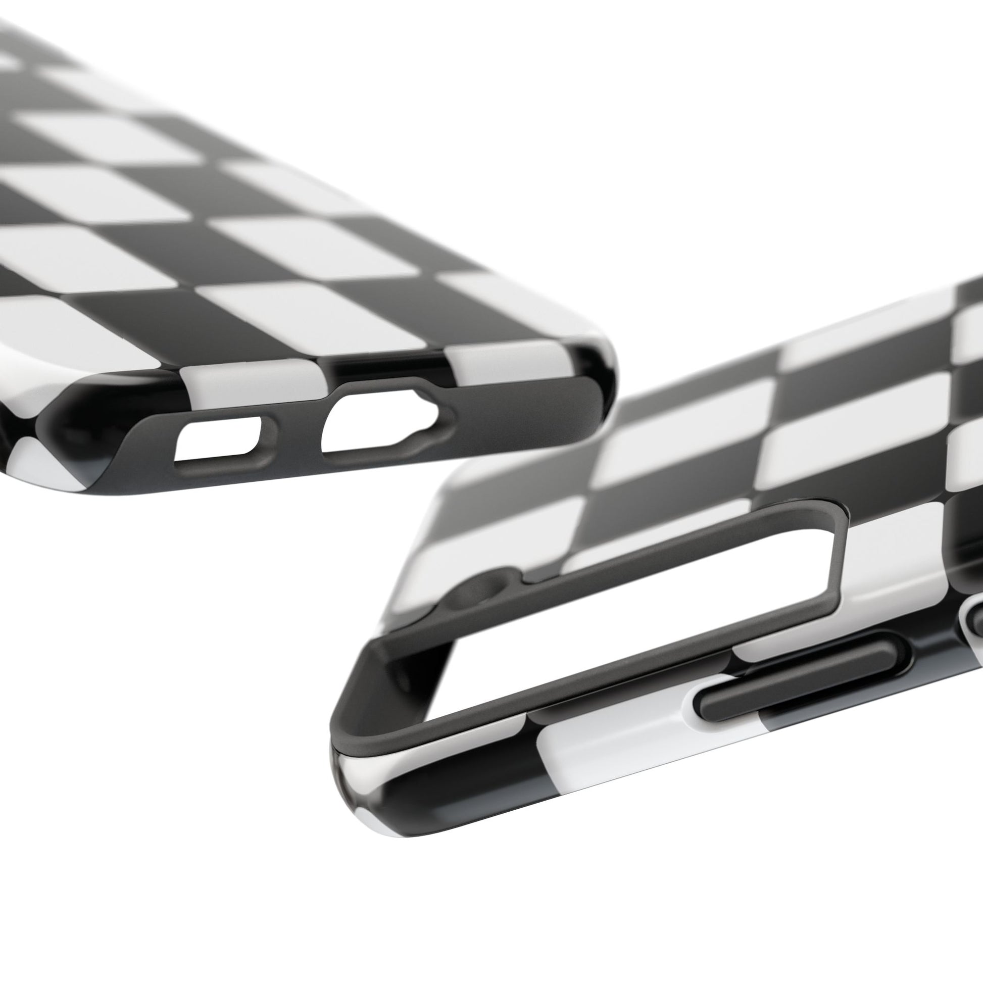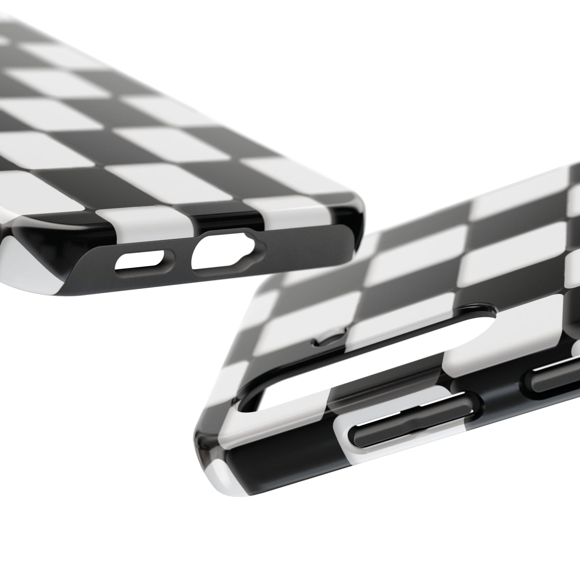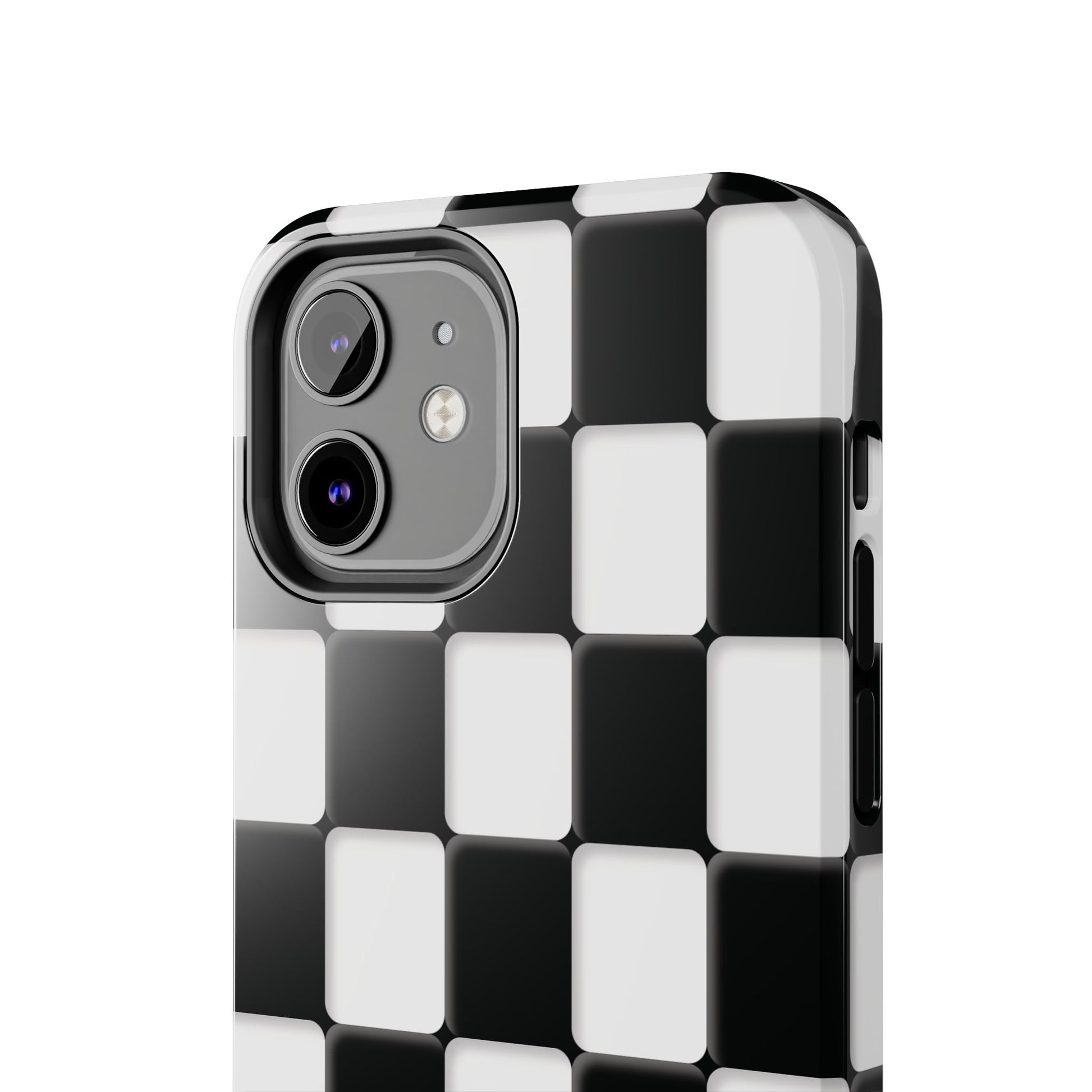 Checkerboard Tough Phone Case — Black & White Retro Protective Cover