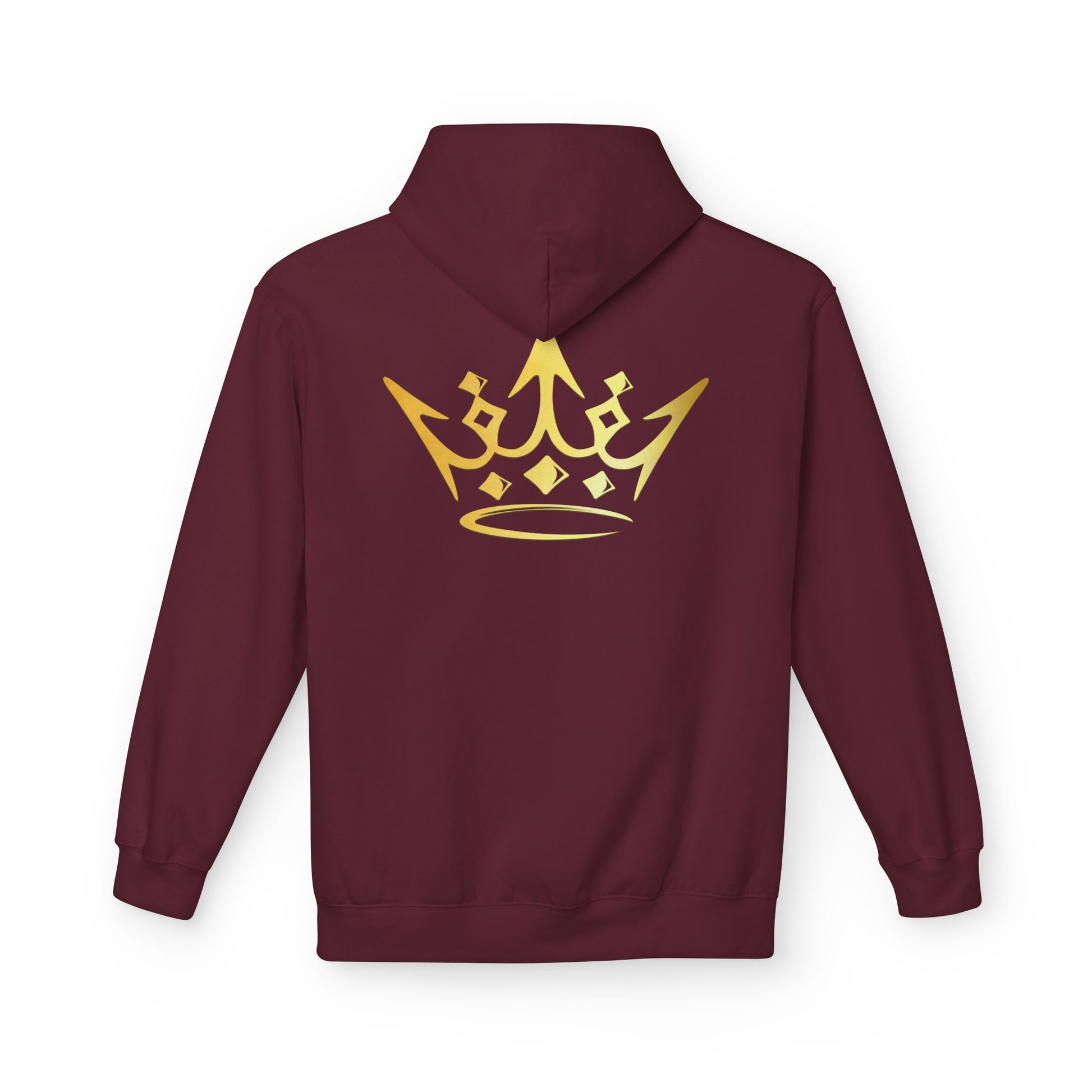 This midweight fleece hoodie brings a quiet, confident energy to everyday wear. The soft, cotton-forward fabric and dropped shoulders create a relaxed silhouette that hugs without constricting. A subtle, gold-toned crown on the back and small chest script add a touch of understated luxury—familiar, not flashy. The lined two-piece hood and roomy pouch pocket make it easy to pull on for cool mornings, evening walks, or working from your favorite café. Ethically made and OEKO-TEX certified, it feels good to wear and to support—clean materials and socially conscious production woven into a hoodie that slips seamlessly into a calm, curated wardrobe.