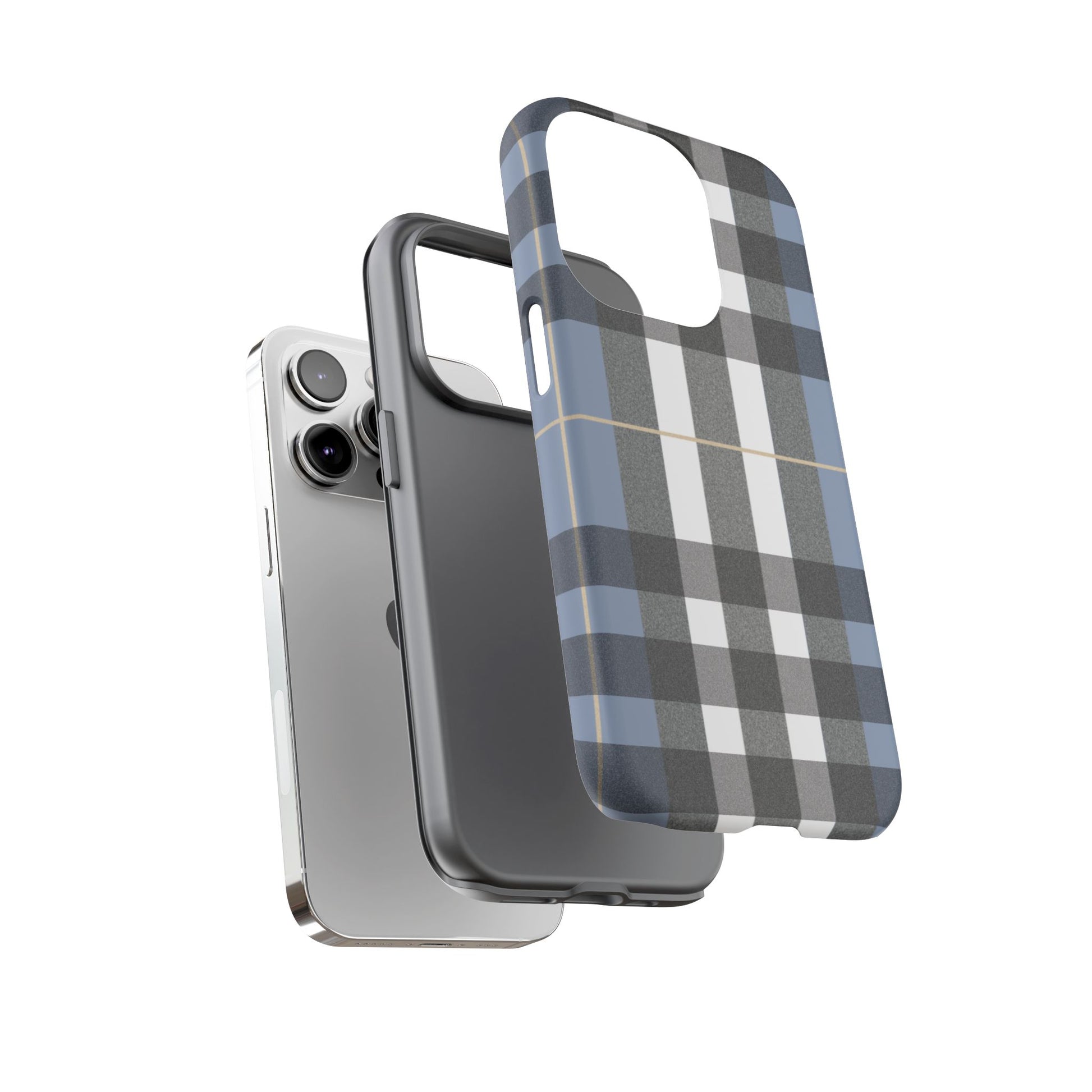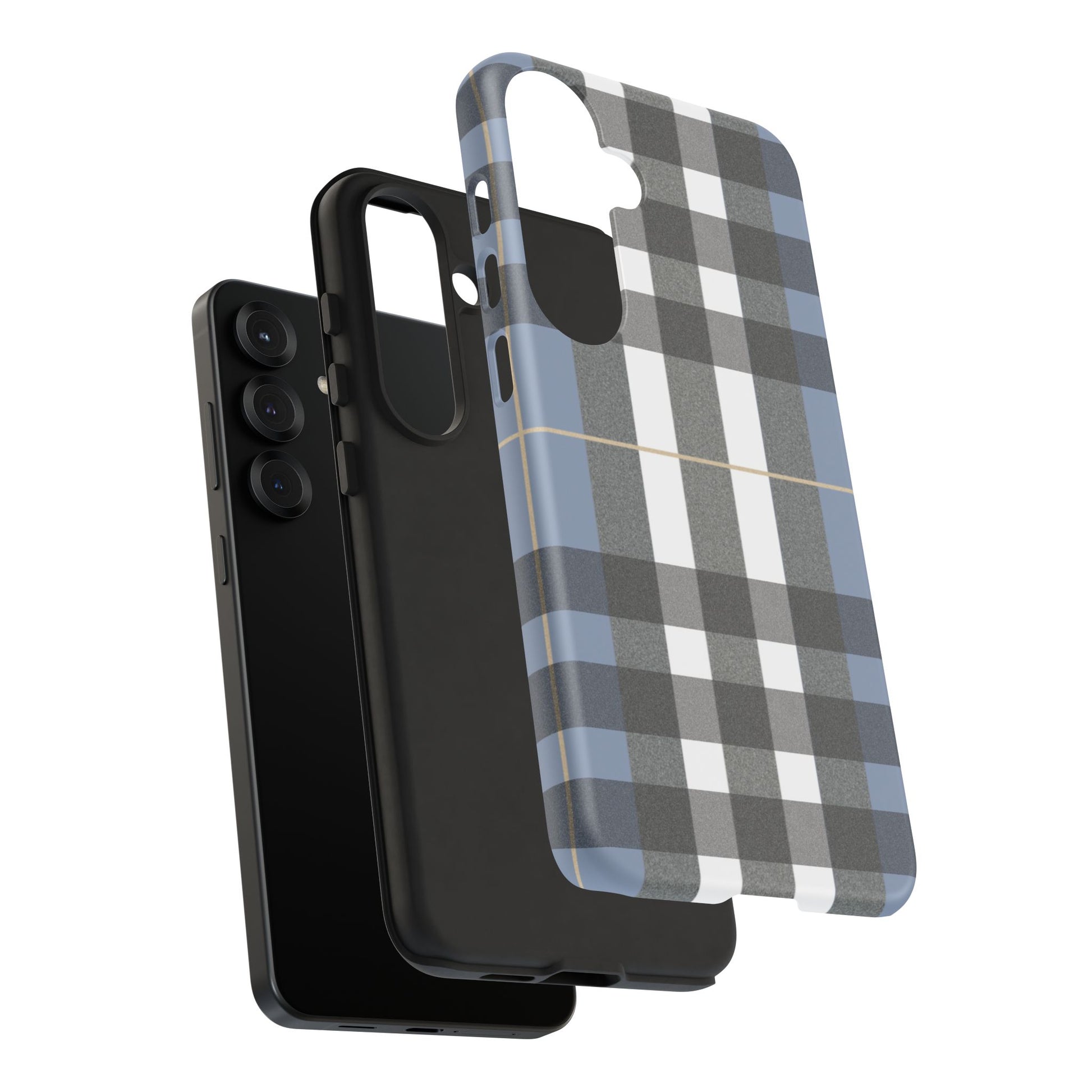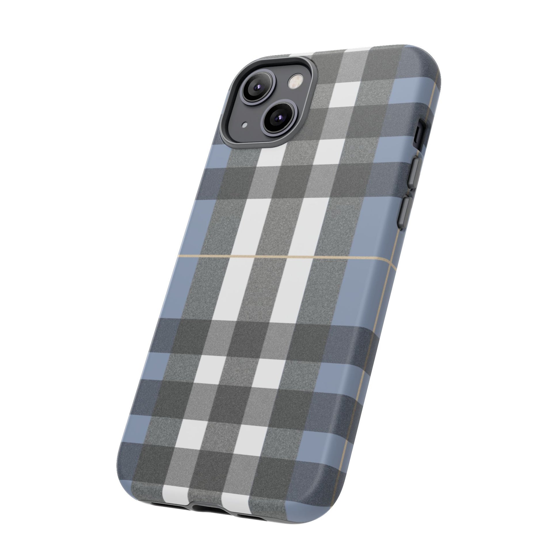 Nordic Plaid Tough Phone Case — Blue Gray Buffalo Check Protective Cover