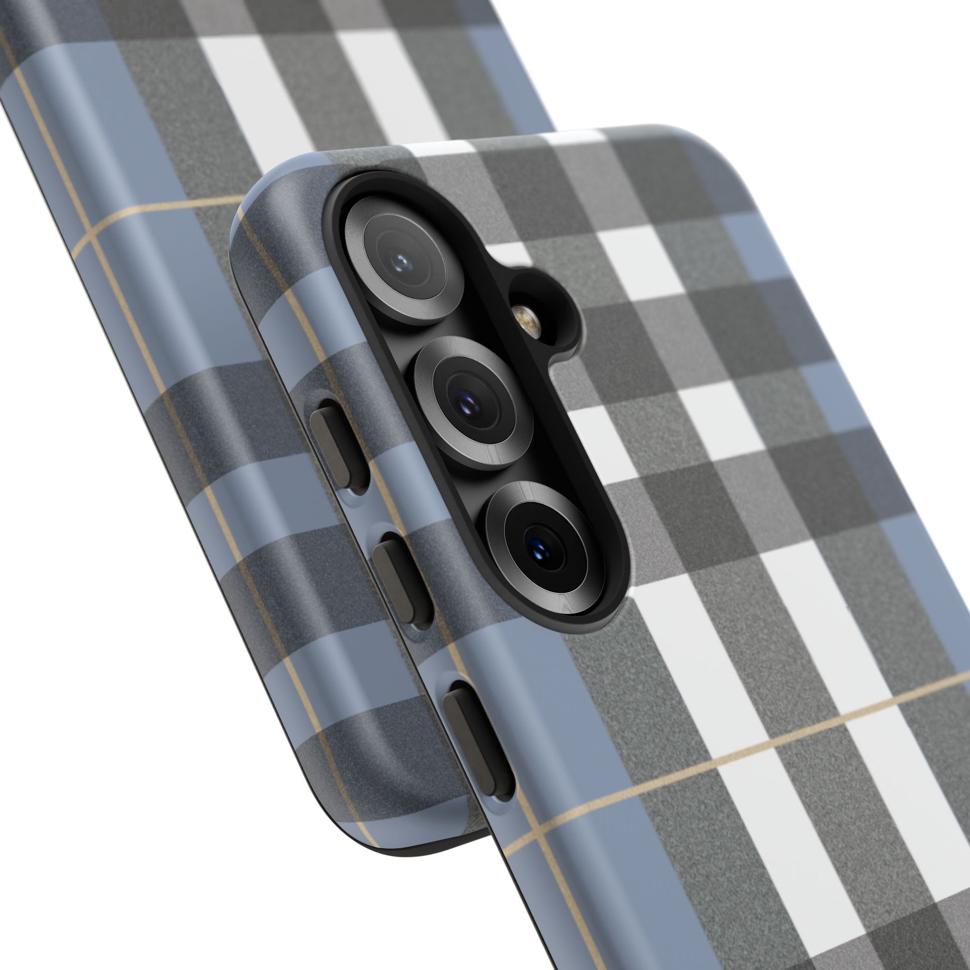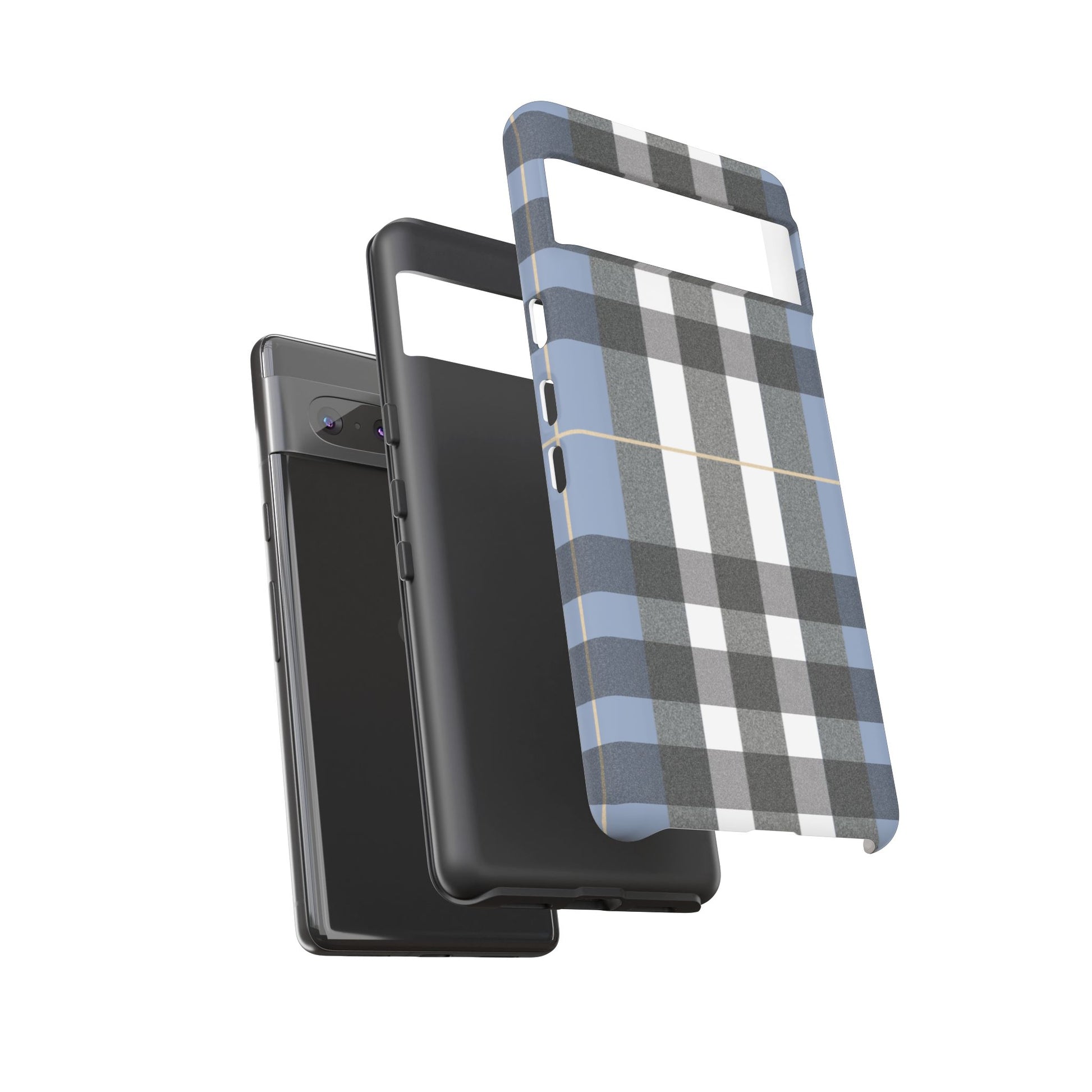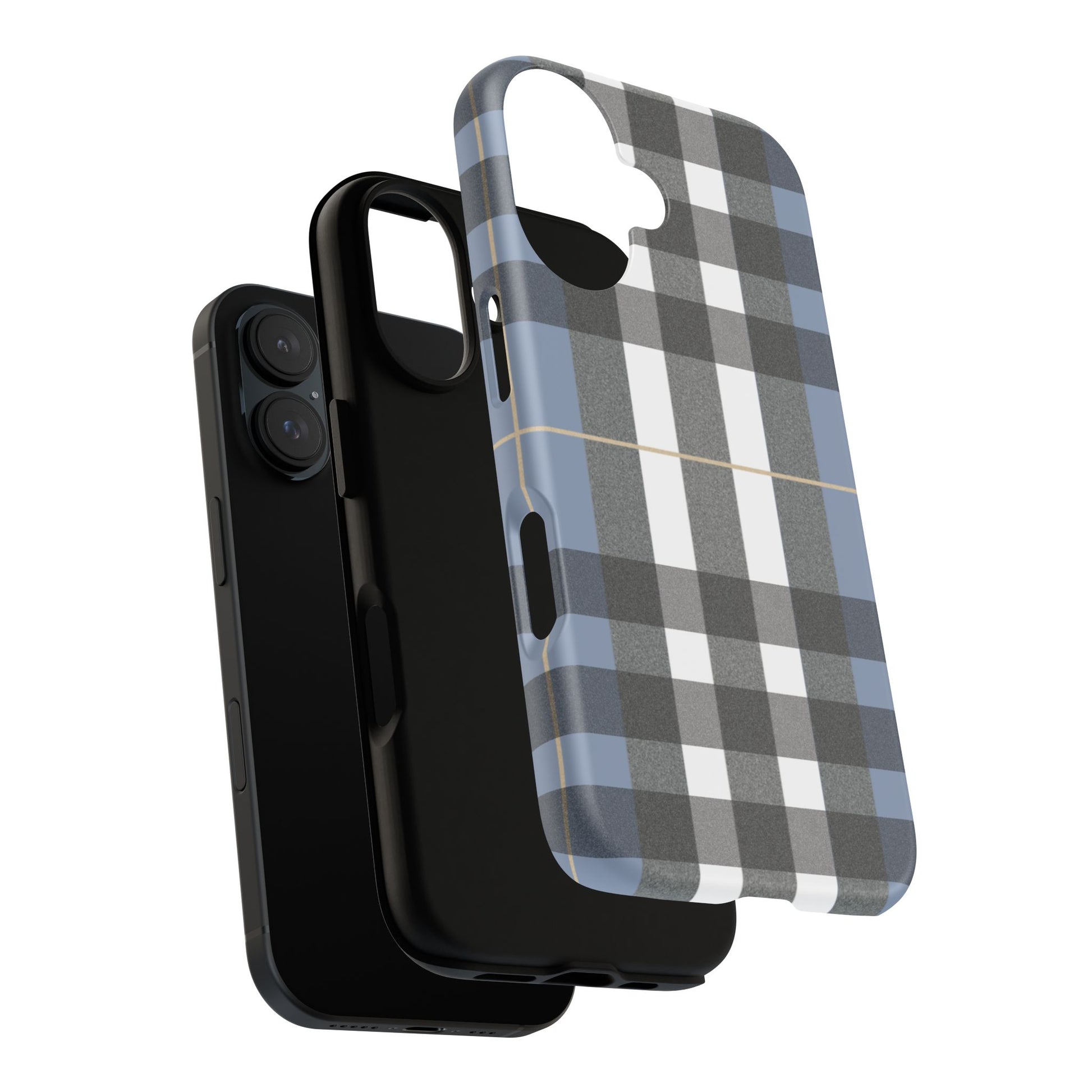 Nordic Plaid Tough Phone Case — Blue Gray Buffalo Check Protective Cover